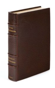 In-12 de 278 pp., (1) f., maroquin janséniste brun doublé de maroquin vert bouteille, fi let doré sur la doublure, dos à nerfs avec titre doré, tranches dorées sur témoins, couverture et dos conservés, étui (Georges Cretté).