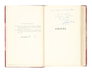 Un des 60 exemplaires de tête numérotés sur pur fi l du Marais (n° 6) enrichi dur le faux-titre de cet envoi autographe : Pour