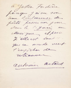 Bel envoi autographe signé à pleine page à Gaston Ferdière.