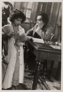 [ARTAUD]. PASTIER (Georges). — Photographie d’Artaud avec la fille de Paule Thévenin, Domnine. — 12,5 x 8,5 cm. — Tirage d’époque. 1948.