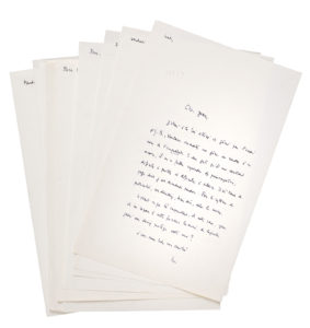Et bien, je suis triste, cher Jean, de me séparer (fût-ce, je l'espère, momentanément), de ces cahiers auxquels je m'étais curieusement attaché, d'une manière presque spatiale, à la façon d'un tableau et de ce tableau même dont ils m'invitaient amicalement à me représenter la rare possibilité. (Etes-vous en grave conflit avec eux ? Allez-vous les maltraiter ? Me les rendrez-vous bientôt ? Mais voilà qui est indiscret, et je vous les envoie tout à l'heure, sous pli recommandé).
