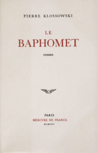 KLOSSOWSKI (Pierre). — Le Baphomet. — Paris, Mercure de France, 1965, in-12, broché, couv. rempl., 223 p.