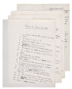 mettant en scène Roberte (Les Lois de l'hospitalité). 8 p. in-4 à l'encre noire.