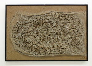 MALAVAL (Robert) — Avancée d’Aliment blanc, 1961 — Technique mixte (peinture et collage de papier froissé en relief) sur panneau — Signé en bas à droite 50 x 73 x 6 cm