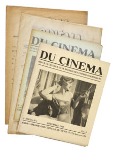 REVUE. LA REVUE DU CINÉMA. — Première série. — Numéros de 1 à 29. — Paris, José Corti - N.R.F., Décembre 1928 - Décembre 1931, 3 numéros in-4°, et 26 numéros in-8, 4 volumes reliés demi chagrin havane, dos à nerfs, couverture...
