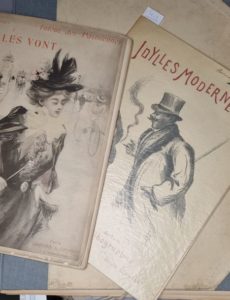 BOUTET (Henri). Sur le Vif. Suite de 12 lithographies en couleurs, en feuilles, chemise de l éditeur à lacets. Suite de 12 lithographies originales rehaussées au pastel. Tirage à 50 exemplaires. On joint : BOUTET (Henri). Autour des Parisiennes. Où elles vont. Paris, Fortie-Marotte, A. Charles, s.d. Album in-4, broché, couverture en couleurs illustrée par Boutet. 16 planches. - BOUTET (Henri). Idylles modernes. Suite de 10 lithographies par Henri Boutet. Paris, chez l auteur, s.d. In-4, en feuilles. Envoi autographe signé de Boutet sur la couverture illustrée.
