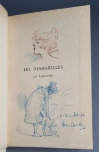 BOUTET (Henri). - MONTORGUEIL (Georges). Les Déshabillés au Théâtre. Paris, Floury, 1896. In-8, bradel veau raciné fauve, tête dorée, non rogné, couverture illustrée et dos (Reliure de l époque). Exemplaire enrichi de 2 DESSINS ORIGINAUX dont l un accompagnant un envoi à Pierre Dauze. Prospectus joint.