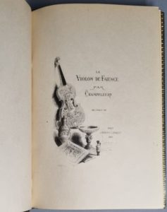 CHAMPFLEURY. Le Violon de faïence. Paris, L. Conquet, 1885. In-8, maroquin vert, triple filet doré, dos orné de même, tranches dorées, dentelle intérieure, couverture (Gruel).