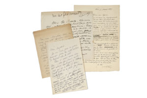 NADAR (1820-1910).— 4 L.A.S. "Nadar", [Paris, 1867]. — Divers formats (pliures, tâches, ratures, corrections). —