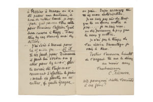 PISSARRO Camille (1830-1903).— L.A.S. "C.Pissarro", Londres, 15 juin 1892, adressée à sa femme Julie. —3 pages in-16 (pliures), notes au dos au crayon papier.