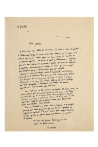 CAMUS Albert (1913-1960). — L.A.S. "A Camus", s.l., 10 juillet [1945], adressée à Raymond GUERIN, écrivain français. — 1 page in-4.