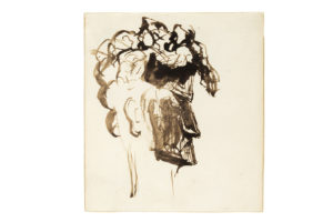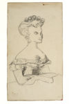 HUGO Victor (1802-1885).Tête d'homme de profil — Encre et lavis brun — 8.2 x 7.4 cm — Femme croisant les bras — Dessin à la mine de plomb. — 12.5 x7 cm