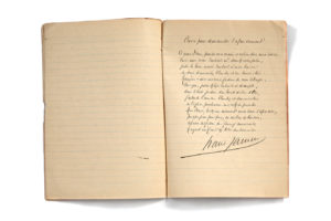 JAMMES Francis (1868-1938). — Manuscrit autographe signé, intitulé "Deuxième série de Prières ", Orthez, [1898-1899]. — 10 pages et demie in-4, coupure de presse, cousues de fil rouge en un cahier (quelques manques marginaux sans atteinte au...