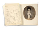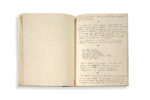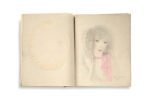 Ce manuscrit, probablement inédit, se présente comme une brochure spécialement conçue par les deux artistes pour Marie Laurencin, avec des pages manuscrites de Cocteau et un autoportrait de Marie Laurencin. Il est recouvert d'une belle couverture illustrée sur laquelle Cocteau a calligraphié : " Marie Laurencin par Jean Cocteau" accompagné d'un coeur rouge. A l'extrème gauche, un ruban noir glissé dans la couverture à impression dorée portant "Paris" et deux ancres marines. Le long du ruban figure la date de Mars 1922 de la main de Cocteau. contenu : un feuillet blanc - un feuillet sur lequel a été contrecollée la reproduction du portrait de Cocteau par Marie Laurencin daté 1921 - l'autoportrait de Marie Laurencin à l'écharpe rose, daté 1923, crayon sur papier signé et daté en bas à droite. (285 x 215 mm) et 6 ff. 1/2 in-4 (282 x 212 mm) titré "Marie Laurencin".