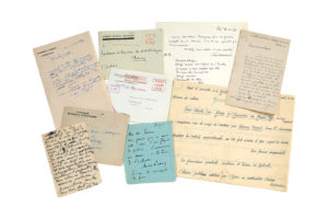 Manuscrit autographe, intitulé "Annonce bibliographique pour les Cahiers de la Quinzaine", s.d.n.l. 3 pages in-4, papier transparent (pliures).