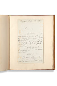 -L.A.S. attestant de l'envoi des Étoiles pour le concours Sonnetti de 1884. Denain, 30 août 1884. 1 p. in-8. Piqûres.