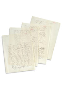 SAINT-EXUPERY Antoine de (1900-1944). — Brouillon de lettre, [New York, 17 décembre 1942], adressée à Jacques MARITAIN. — 4 feuillets in-4, papier pelure blanc, au filigrane "Onion Skin. Made in U.S.A." (ratures, corrections).