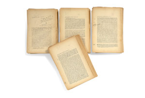 SARTRE Jean-Paul (1905-1980). — "Saint Genet comédien et martyr". — Paris : Gallimard, 1932. 71 placards, comportant chacun 8 pages in-8 (252 x 167 mm). — Quelques salissure et petites taches, quelques déchirures dans les marges et aux pliures.