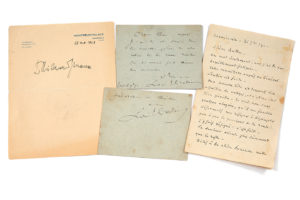 MUSIQUE.STRAUSS Richard (1864-1949). — Signature "Richard Strauss", [Montreux], 27 octobre 1948. — 1 page in-8 (pliure), en-tête "Montreux-Palace, Suisse".