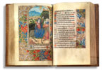 Elégant livre d'heures entièrement rouennais illustré par le « peintre de figures » Robert Boyvin de 12 miniatures, toutes également ornées de riches bordures de « l'enlumineur décorateur » Jean Serpin.