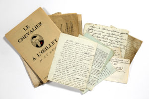 3 L.A.S. "De Rougeville" ou "DR", 2 LA, 3 billets à ordre ou reçus concernant le chevalier, un livret intitulé "le chevalier à l'oeillet" par Av. de Walle, 2 numéros de l'Eclair de 1905, concernant Fersen et Marie-Antoinette ; 3 numéros de journaux de 1869, évoquant la création de la pièce de Dumas (Journal de l'Empire, Moniteur Universel, Petit Journal).