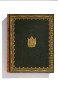Demi-chagrin de l'époque, dos à nerfs orné des emblèmes de l'Empire, large encadrement doré sur les plats, armes de Napoléon Ier au centre, plats de couverture conservés.