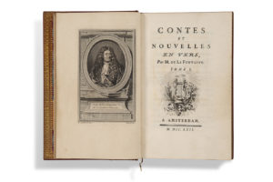LA FONTAINE (Jean de). — Contes et Nouvelles en vers. — Amsterdam [i.e. Paris] : 1762. — 2 volumes in-8 (179 x 123 mm), portrait-frontispice, xiv-(2)-268-(2) pages et 39 planches ; portrait-frontispice, (2)-viii-(2)-306-(2)-16-(1) pages et 41...