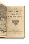 MOLIÈRE (Jean-Baptiste POQUELIN, dit). — Le Misantrope. — Comédie. — Paris : Jean Ribou, 1667. — In-12, frontispice, (20)-84 pages. — Maroquin rouge janséniste du XIXe siècle, dos à nerfs, double filet doré sur les coupes, dentelle...