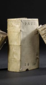 manuscrit sur le premier plat (« Pazl // 1659 »). 6 ff. en déficit à la fin du premier titre (dont 2 de table).