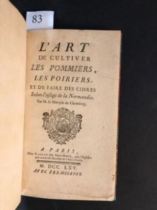 [GASTRONOMIE / ARBORICULTURE]. CHAMBRAY (Louis de). L'Art de cultiver les pommiers, les poiriers, et de faire des cidres selon l'usage de la Normandie. À Paris, Chez Ganeau, 1765.