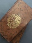 doubles armoiries dorées au centre des plats, dos lisse orné (reliure de l'époque).