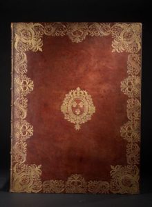 ornant les plats, armoiries aux angles et au centre, dos à nerfs orné, tranches dorées (Relié par Padeloup Relieur du Roy, place Sorbonne à Paris).