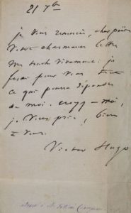 B.A.S. de Victor HUGO adressé à Félicien Champsaur (1 p. in-12 datée d'un 27 septembre). Vicaire, IV, 248.
