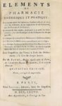 BAUME (A). ELEMENTS DE PHARMACIE THEORIQUE ET PRATIQUE, contenant toutes les opérations fondamentales de cet Art. Avec l'exposition des vertus et doses de médicaments. Paris, Samson, 1777. In-8 de [4]-40-957-[3] pages, basane marbrée, dos à nerfs orné (Reliure de l'époque).