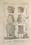La pharmacopée du savant chimiste contient de nombreuses formules perdues aujourd'hui et des plus efficaces pour certaines maladies. La dernière partie traite de l'art du confiseur et de celui des eaux de senteurs et liqueurs de table. Illustré de 3 planches dépliantes d'ustensiles et d'un tableau replié. Petits défauts au dos, très rares rousseurs. Bon exemplaire.