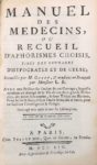 Nouvelle édition avec un appendice sur les maladies des chevaux et autres quadrupèdes, avec relié à la suite : GUYOT. Manuel des médecins ou recueil d'aphorismes choisis. Paris, Prault, 1754. Restaurations aux reliures, qq. frottis, rousseurs.