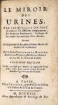 Troisième édition revue, corrigée et augmentée d'une table. Cet ouvrage paru pour la première fois en 1696 contient les observations médicales de l'auteur sur les couleurs et les odeurs de l'urine. Restaurations.