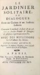 [GENTIL (Père François)]. LE JARDINIER SOLITAIRE, ou dialogues entre un curieux et un jardinier …