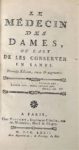 Nouvelle édition revue et augmentée, divisée en 3 parties ; précautions nécessaires pour conserver la santé, des maladies des différents âges et les maladies particulières et essentiellement consacré aux femmes, les derniers feuillets « Supplément en faveur des jeunes Dames, ou extrait de la toilette de Vénus » offrent de nombreuses recettes de beauté. Bon exemplaire.
