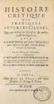 [LE BRUN (Pierre)]. HISTOIRE CRITIQUE DES PRATIQUES SUPERSTITIEUSES, qui ont séduit les peuples, & embarassé les sçavans. Avec la méthode et les principes pour discerner les effets naturels d'avec ceux qui ne le sont pas... Paris, chez Jean de Nully, 1702. 2 parties en 1 vol. in-12 de [68]-637-[28] pages, veau, dos à nerfs orné de motifs dorés (reliure de l'époque).