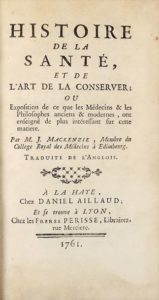 MACKENZIE (James). HISTOIRE DE LA SANTE, ET DE L'ART DE LA CONSERVER ou exposition de ce que les …