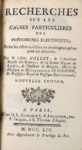 NOLLET (Abbé). RECHERCHES SUR LES CAUSES PARTICULIERES DES PHENOMENES ELECTRIQUES. Paris, Guerin, …