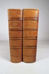 PERDONNET(Auguste). TRAITE ELEMENTAIRE DES CHEMINS DE FER. Deuxième édition. Paris, Langlois et Leclercq, 1858-1860. 2 forts volumes in-8, demi chagrin brun, dos à nerfs (reliure de l'époque).