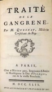 QUESNAY (François). TRAITE DE LA GANGRENE. Paris, d'Houry, 1749. In-12 de [8]-507 pages, veau fauve, dos à nerfs orné (reliure de l'époque).