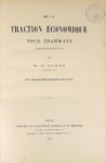 ROWAN (W.R). DE LA TRACTION ECONOMIQUE POUR TRAMWAYS, urbains et régionaux. Paris, Baudry, 1891. …
