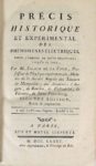 SIGAUD DE LA FOND. PRECIS HISTORIQUE ET EXPERIMENTAL DES PHENOMENES ELECTRIQUES. Paris, rue et …