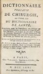 SUE (P.,). DICTIONNAIRE PORTATIF DE CHIRURGIE ou tome IIIe du dictionnaire de santé. Paris, …