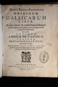 BOXHORN (Marc Zuer van) — Marci Zuerii Boxhornii Originum Gallicarum liber. In quo veteris & nobilissimæ Gallorum gentis origines, antiquitates, mores, lingua & alia eruuntur & illustrantur. Cui accedit Antiquæ Linguæ Britannicæ lexicon...