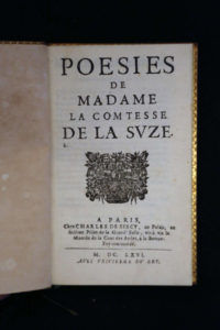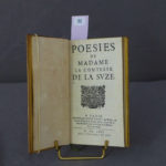 LA SUZE (Henriette de Coligny, Ctesse de) — Poésies de Madame la comtesse de La Suze. Paris, Charles de Sercy 1666. In-12 (14,7 x 9,5 cm.) de 2ff.- 124 pp.- 1f. (privilège) relié plein veau blond glacé, dos à nerfs très finement orné de...