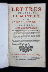 [LE PRINCE DE BEAUMONT (Jeanne-Marie)] — Lettres de Madame Du Montier et de la marquise de ***, sa fille, avec les réponses, où l’on trouve les leçons les plus épurées & les conseils les plus délicats d’une Mère, pour servir de...